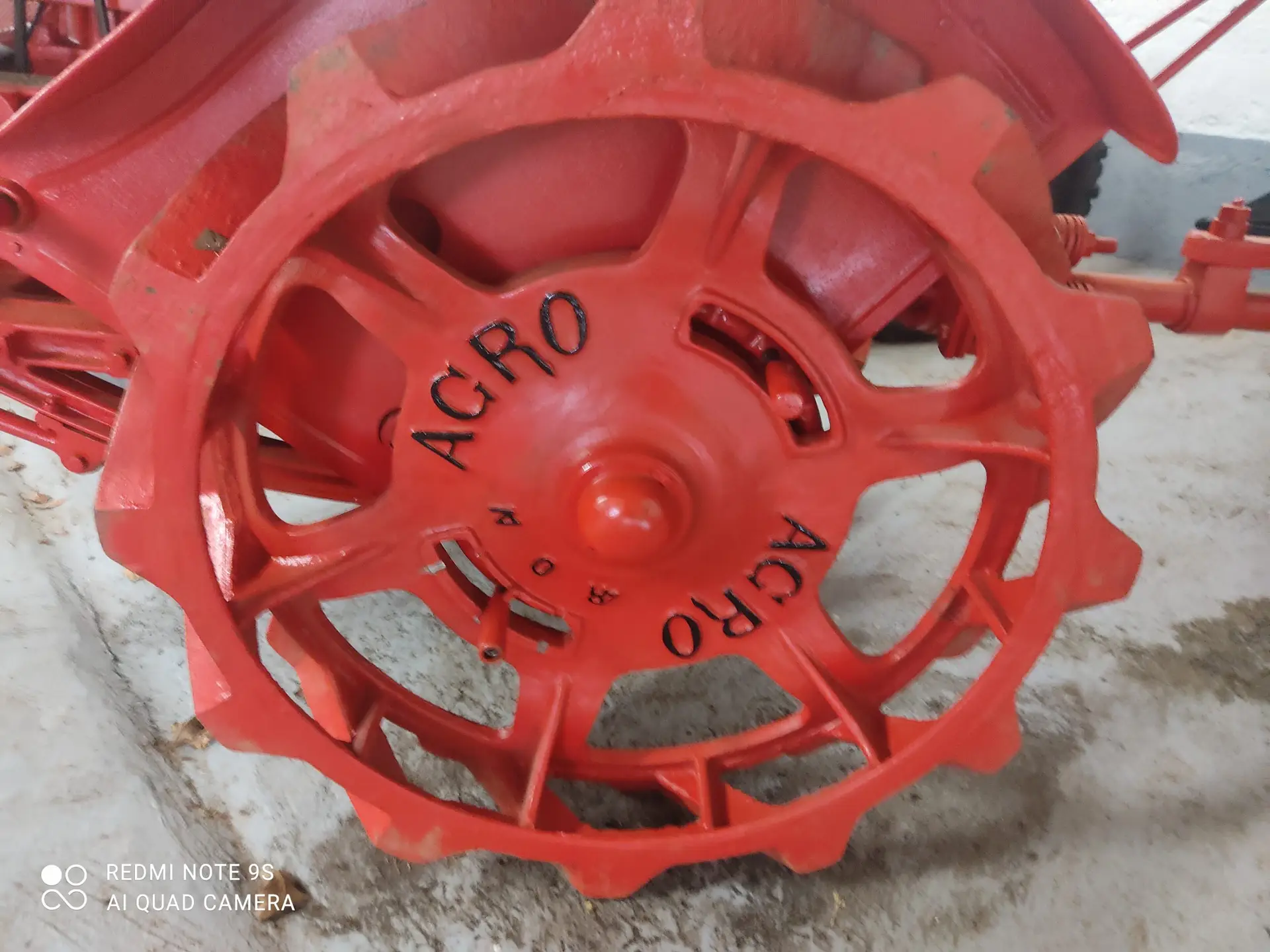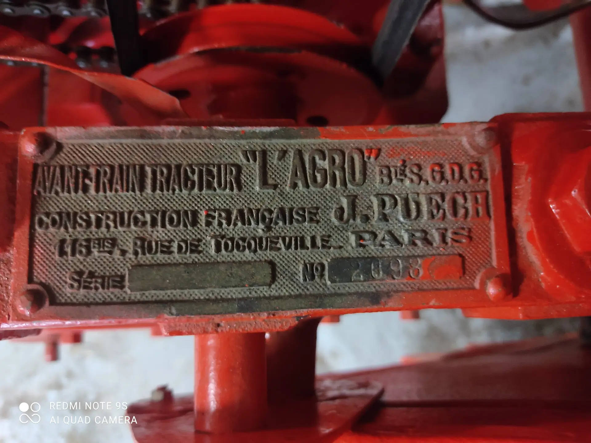 Il avait 2 béquilles sous le moteur pour maintenir l’ensemble horizontal dépourvu de matériel car l’Agro avait des applications multiples (charrue, semoir, faucheuse, moissonneuse, lieuse).