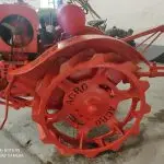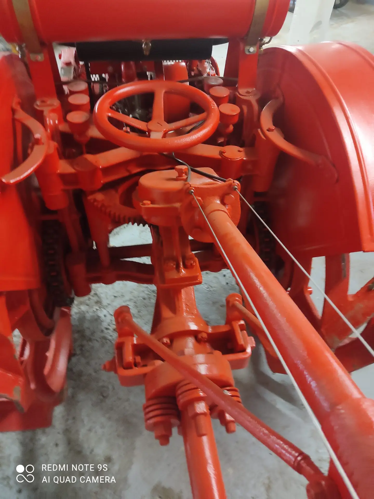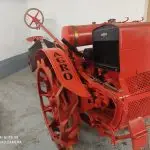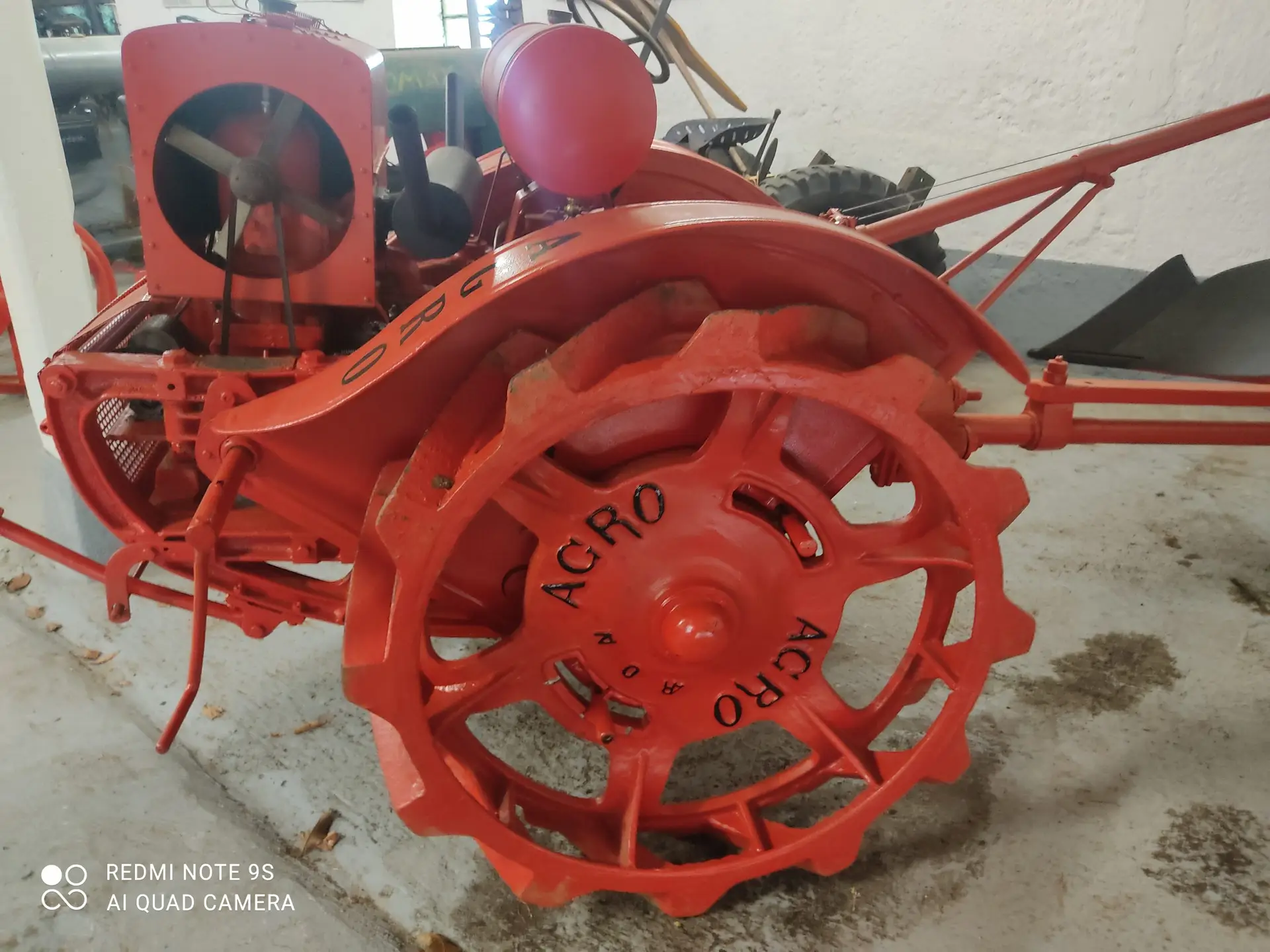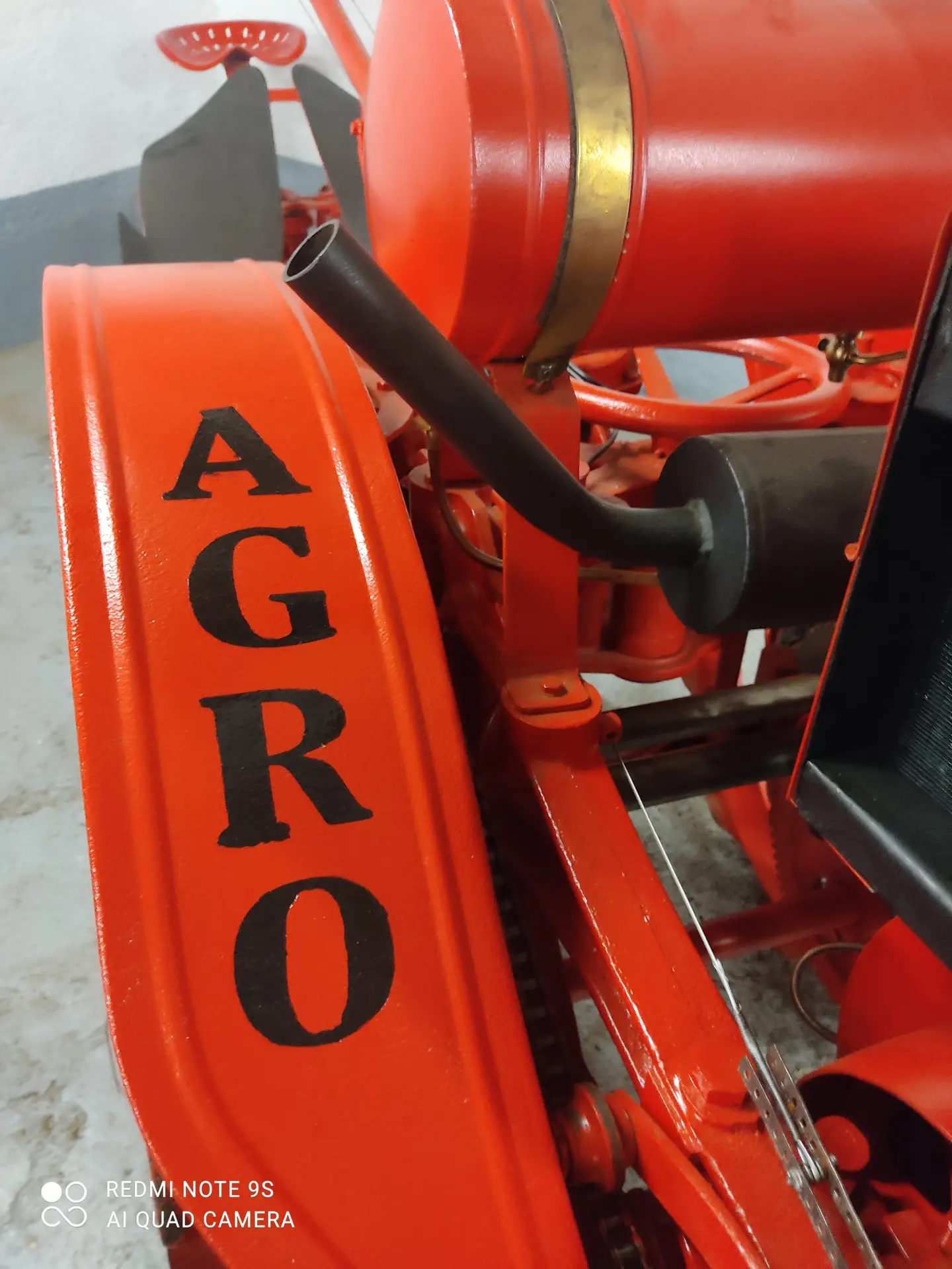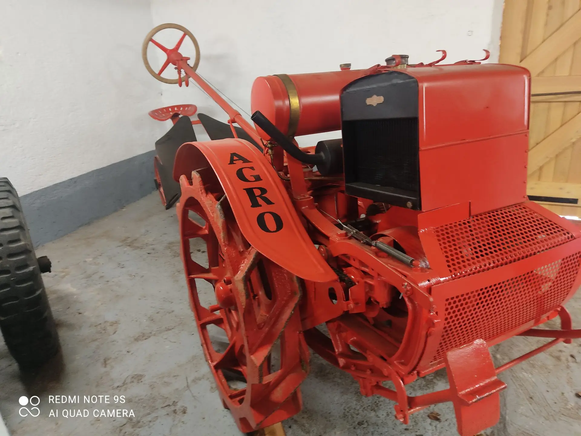 Tracteur AGRO AVANT TRAIN très simple et bien construit monté sur coussinets en bronze. Pas de différentiel, ni de levier, ni de boîte de vitesse. Moteur mono cylindre à 2 temps donnant une puissance de 12 CV refroidi par eau.